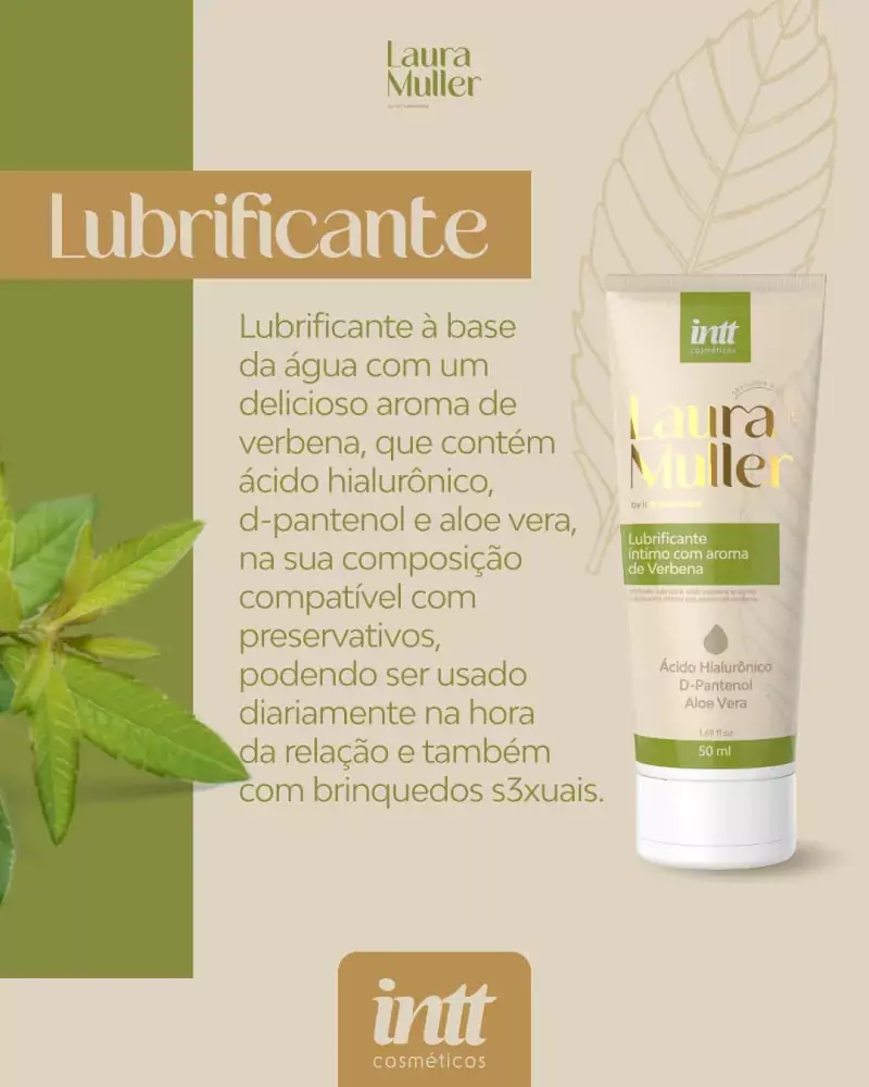 O lubrificante íntimo by Laura Muller é um poderoso lubrificante com aroma de verbena e ativos que proporcionam mais hidratação, deslize e conforto para seus momentos de intimidade.